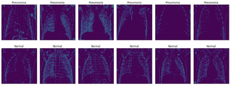 4-2) 훈련용 x-ray 사진을 폐렴과 정상으로 분류하여 시각화