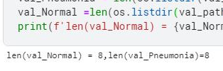 print(f'len(val_Normal) = {val_Normal},len(val_Pneumonia)={val_Pneumonia}')